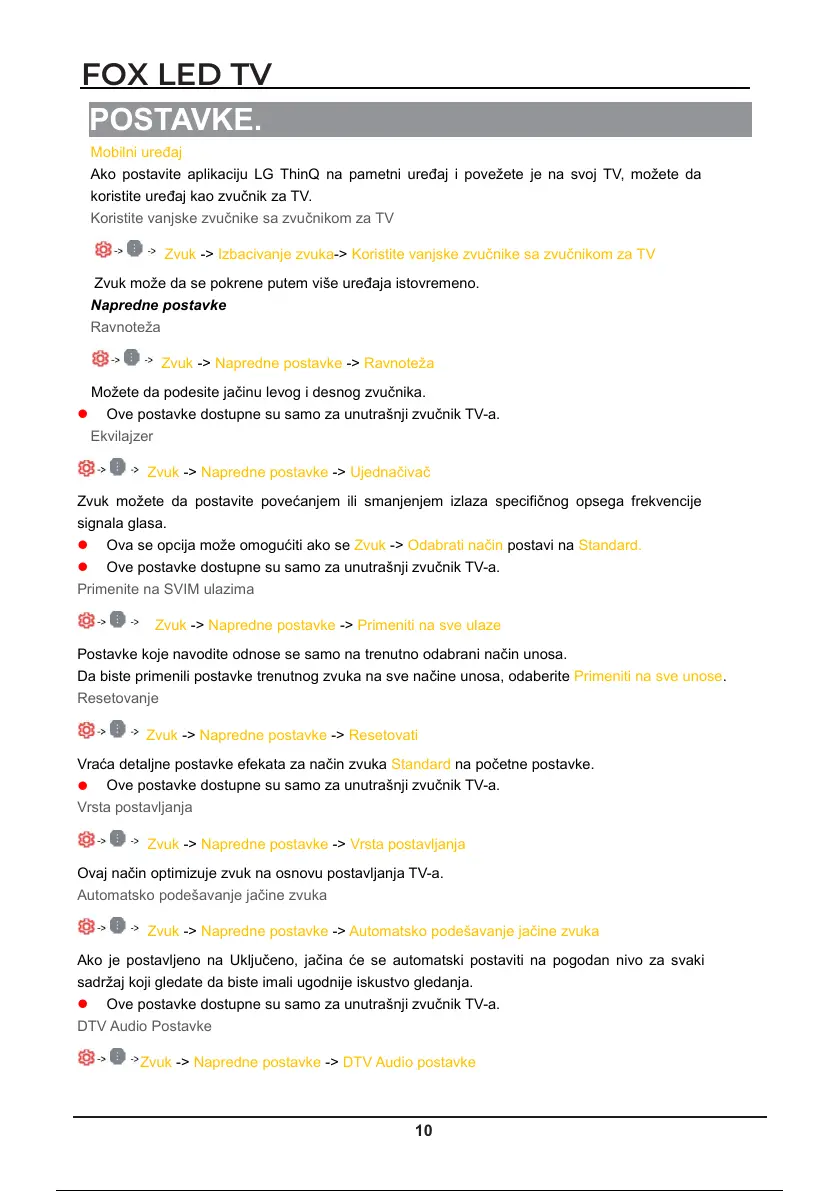 Ove postavke dostupne su samo za unutrašnji zvučnik TV-a.