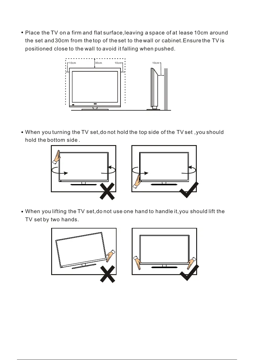the set and 30cm from the top of the set to the wall or cabinet.Ensure the TV is