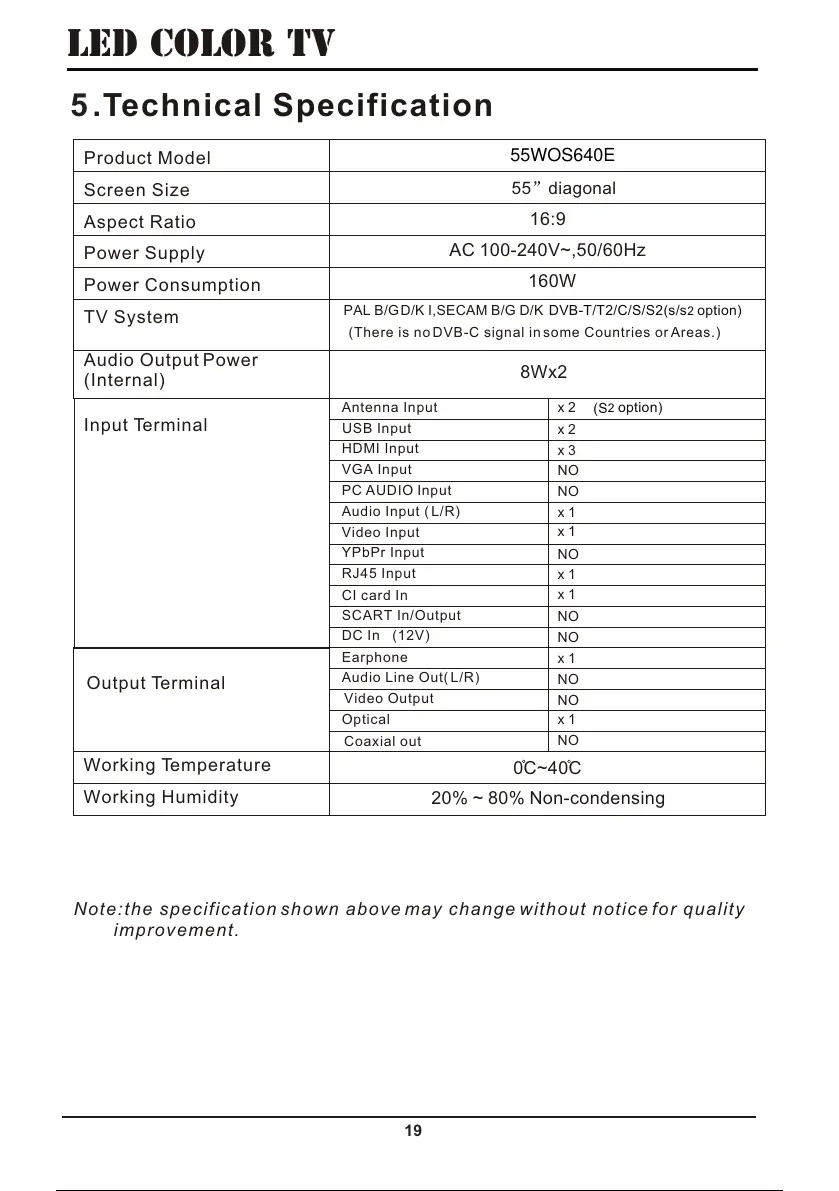 Fox 55WOS640E - T Echnical Specification