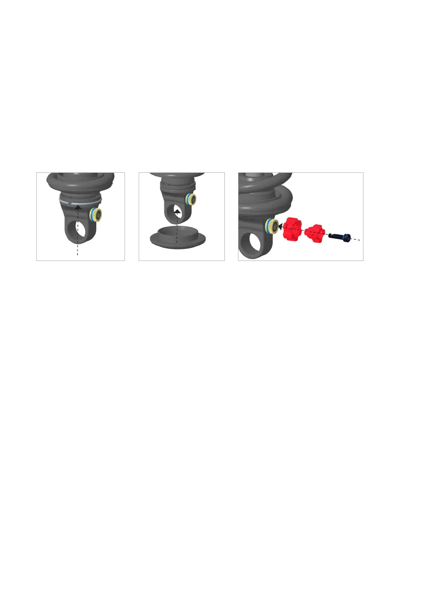 2. Installez le support du ressort sur l’amortisseur en positionnant sa partie saillante à l’intérieur du