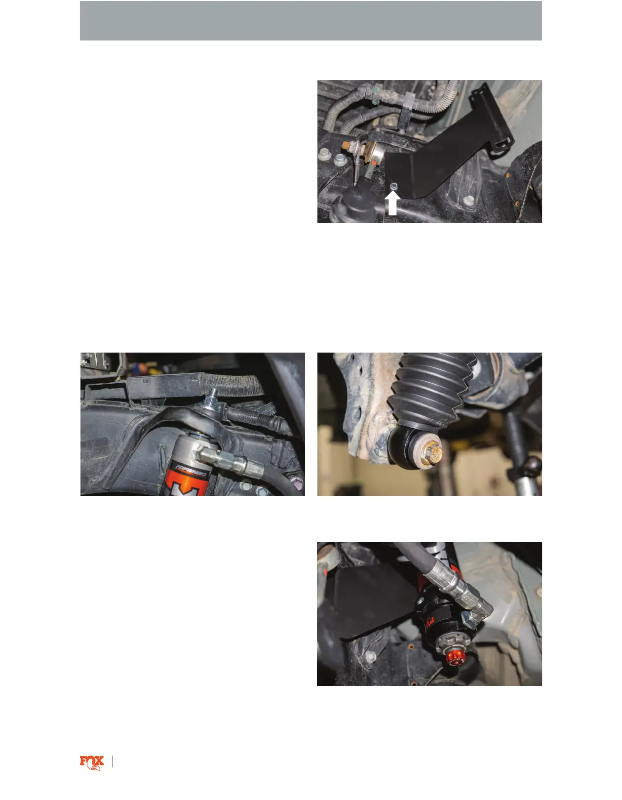 7. Orient the FOX shock with the hose fitting pointed outward. Loosely install the stem top nut and lower