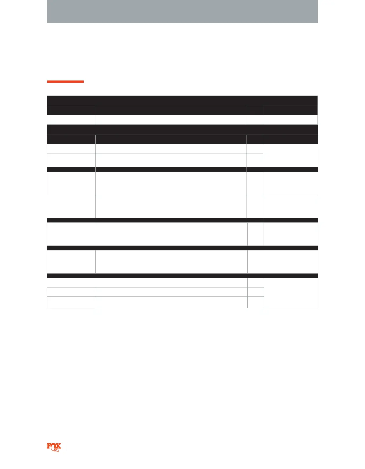 FOX PN DESCRIPTION QTY NOTES