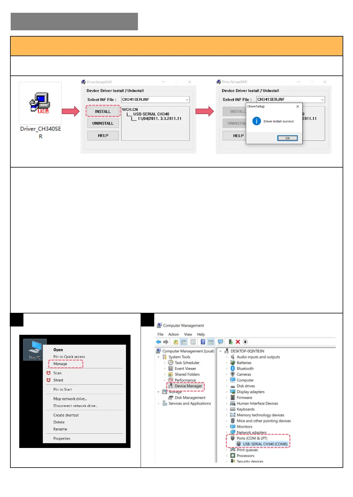 • For Windows 10: Right click “This PC"→ Select "Manage" → Select "Device Manager" from left