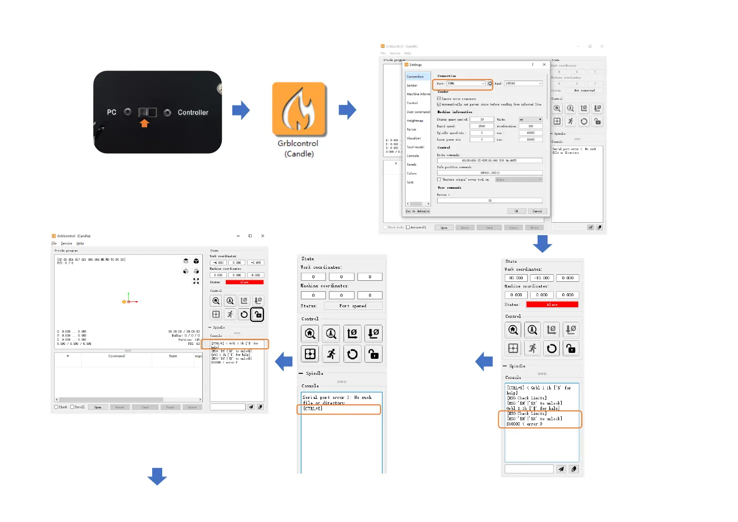 Console window prints “[CTRL+X] < Grbl 1.1f