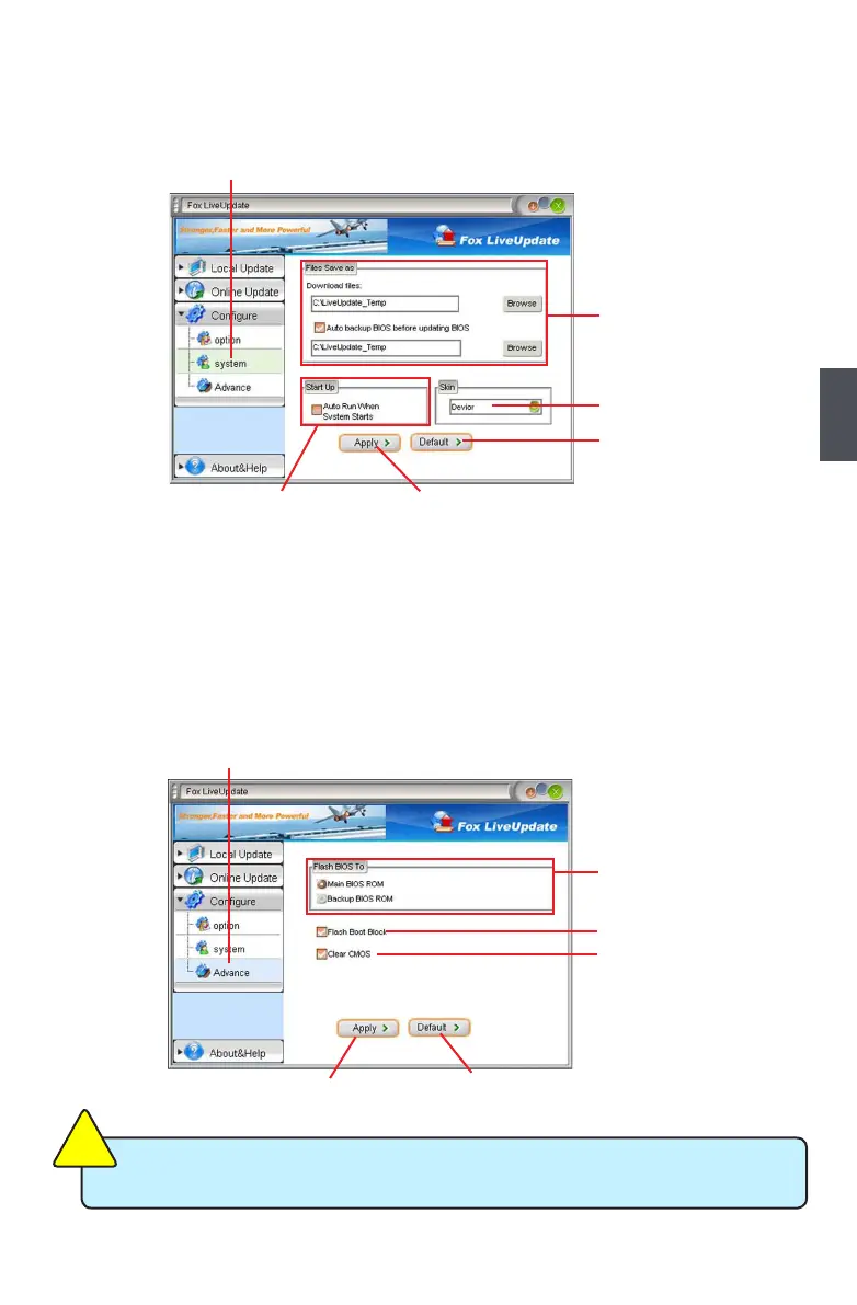 This page lets you set the backup BIOS location and change different skin of the Fox LiveUpdate