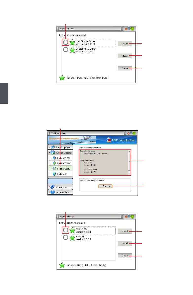This page lets you update utilities from Internet. Click “start”, it will search the new utilities from