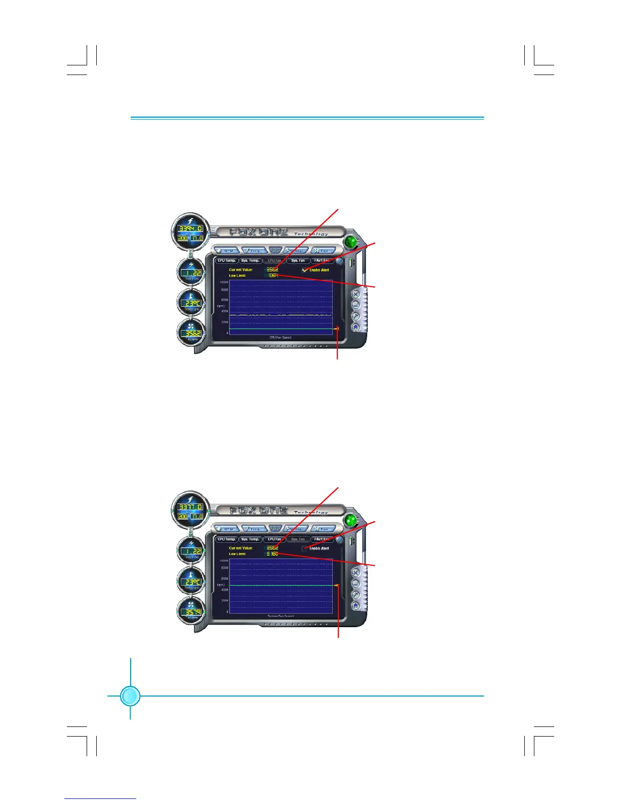 This page lets you to set CPU fan low limit rpm and enable the alert function.