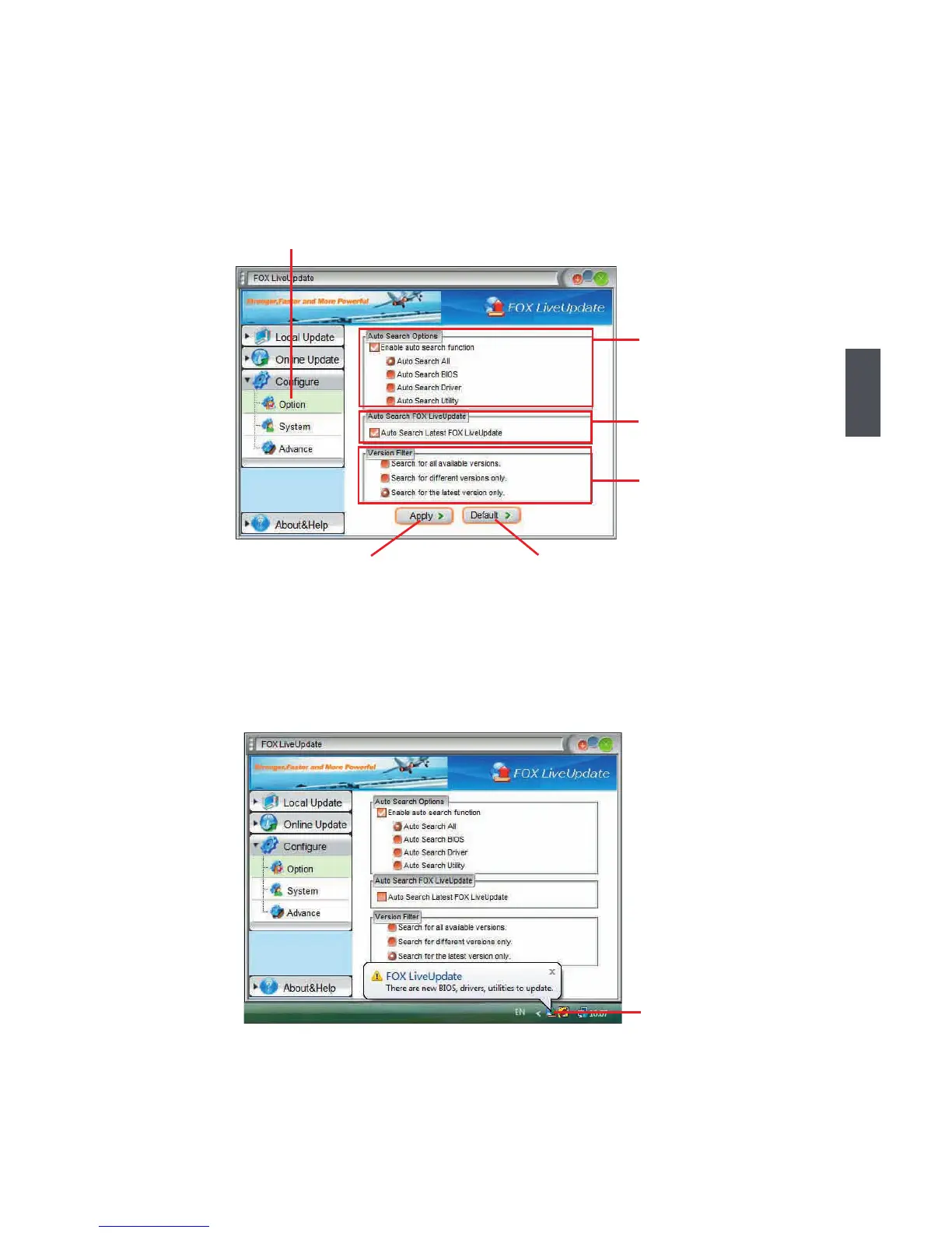 This page lets you set auto search options. After you enable the auto search function, FOX