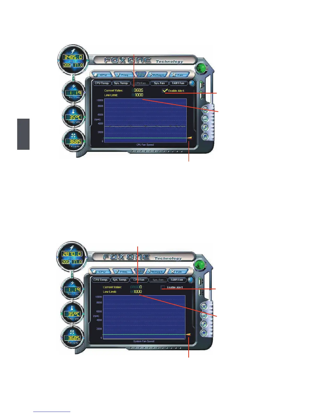This page lets you to set system fan low limit rpm and enable the alert function.
