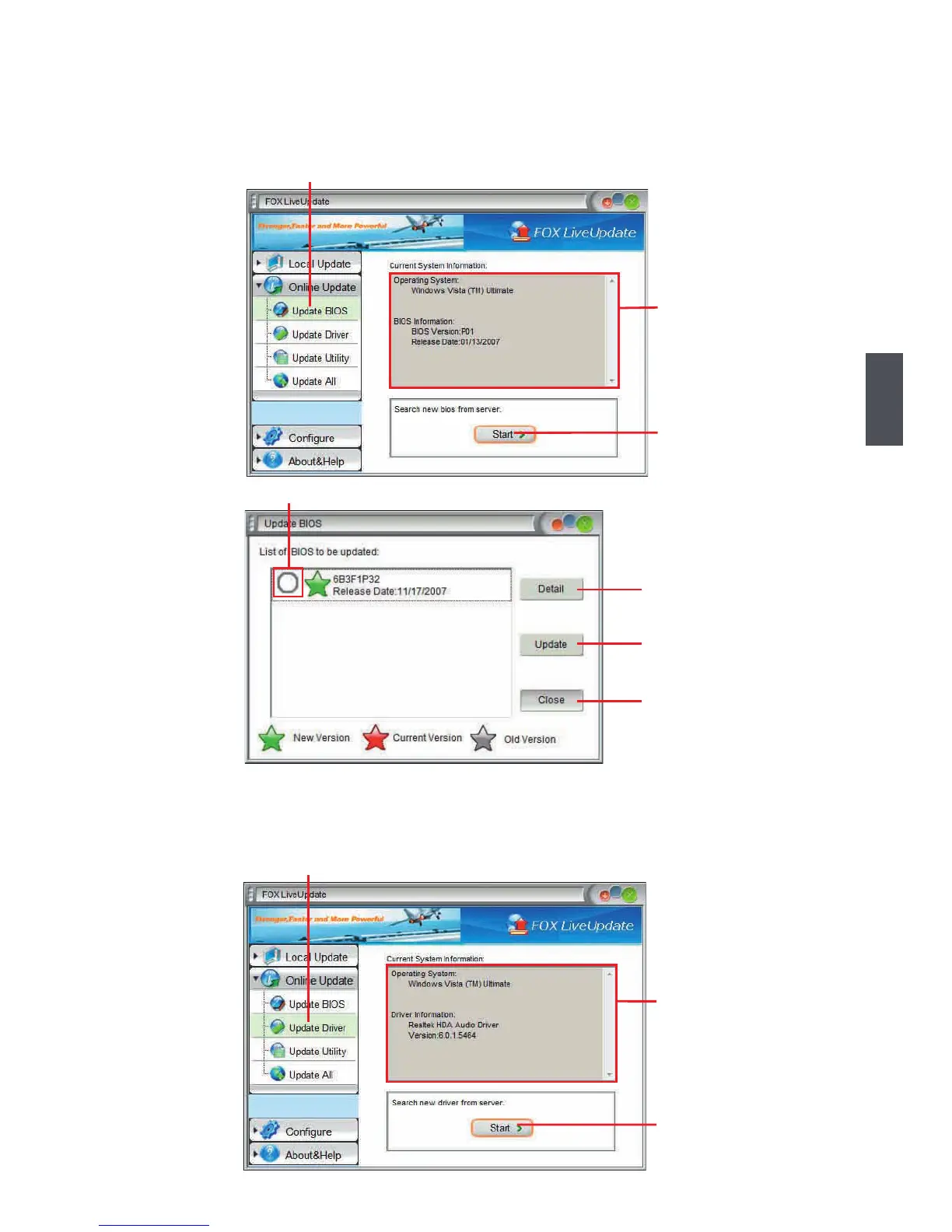 This page lets you update your system BIOS from Internet. Click “start”, it will search the new
