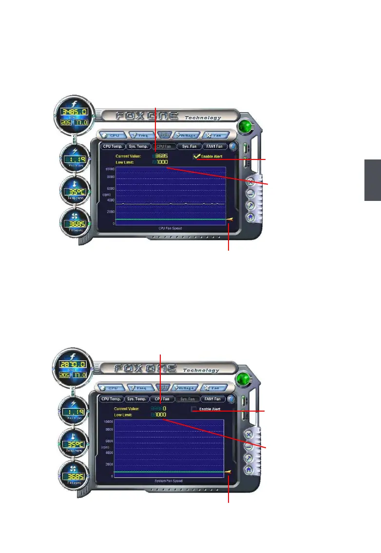 This page lets you to set system fan low limit rpm and enable the alert function.