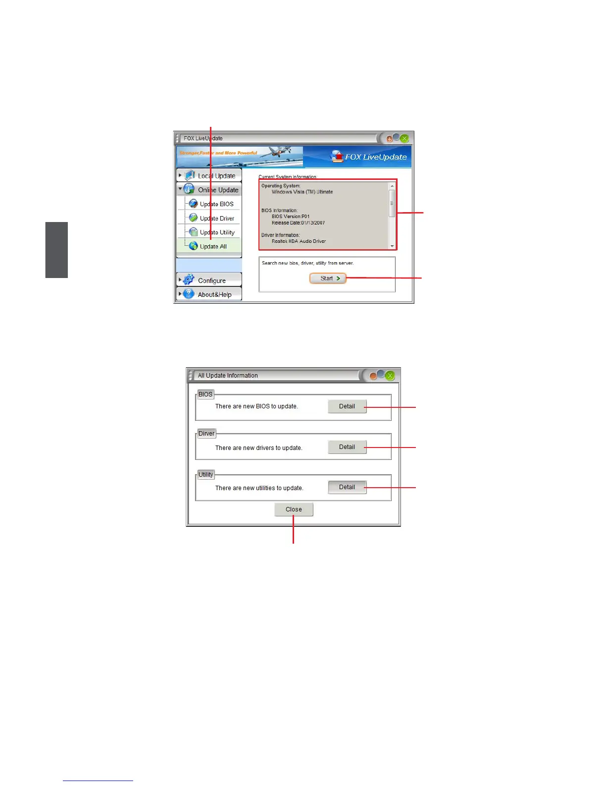 This page lets you update your system drivers from Internet. Click “start”, it will search all new