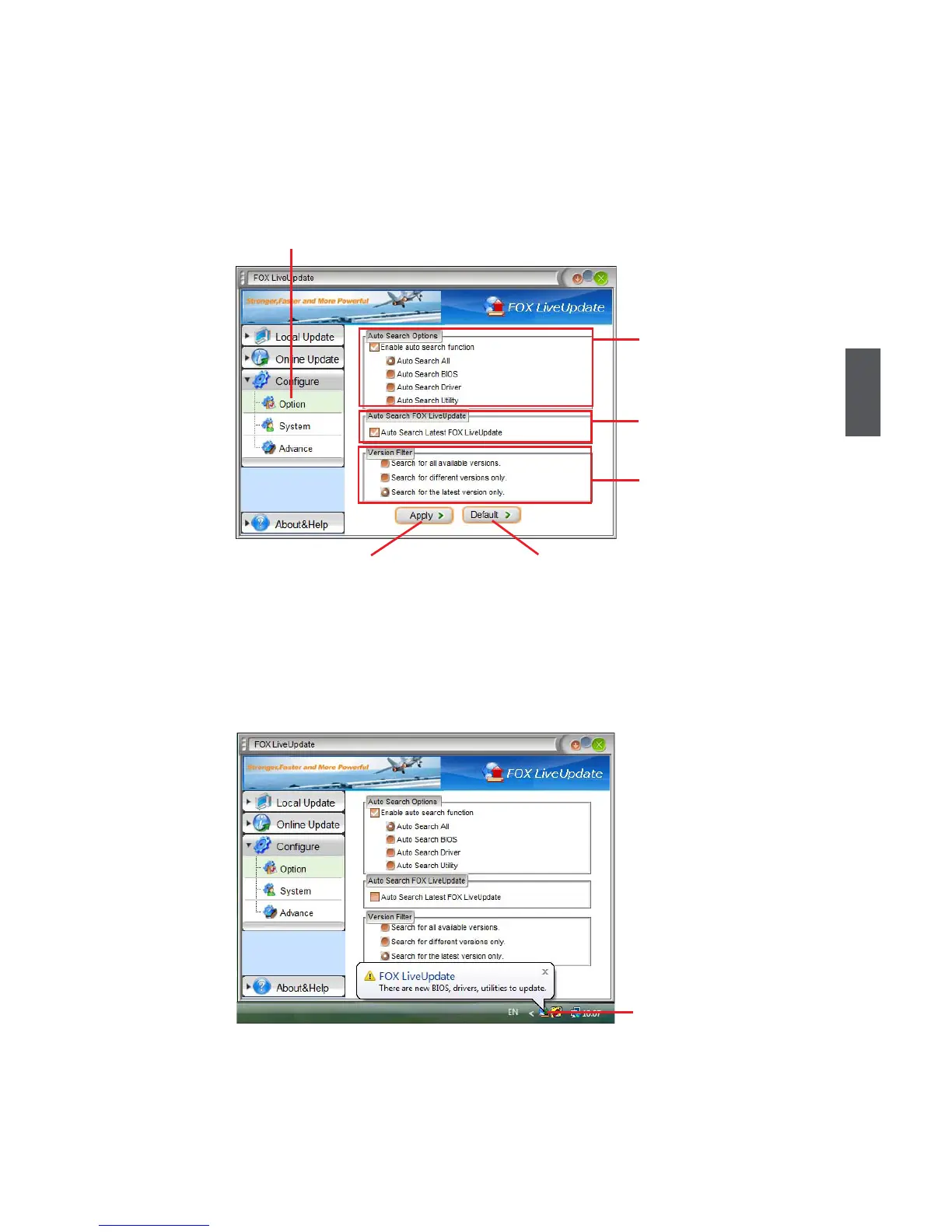 This page lets you set auto search options. After you enable the auto search function, FOX