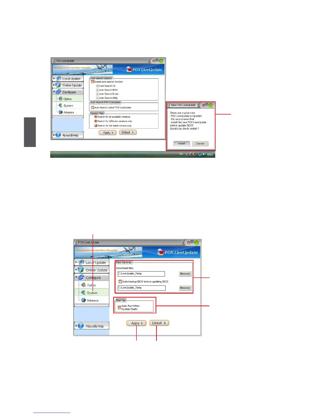 This page lets you set the backup BIOS location and change different skin of the FOX LiveUpdate