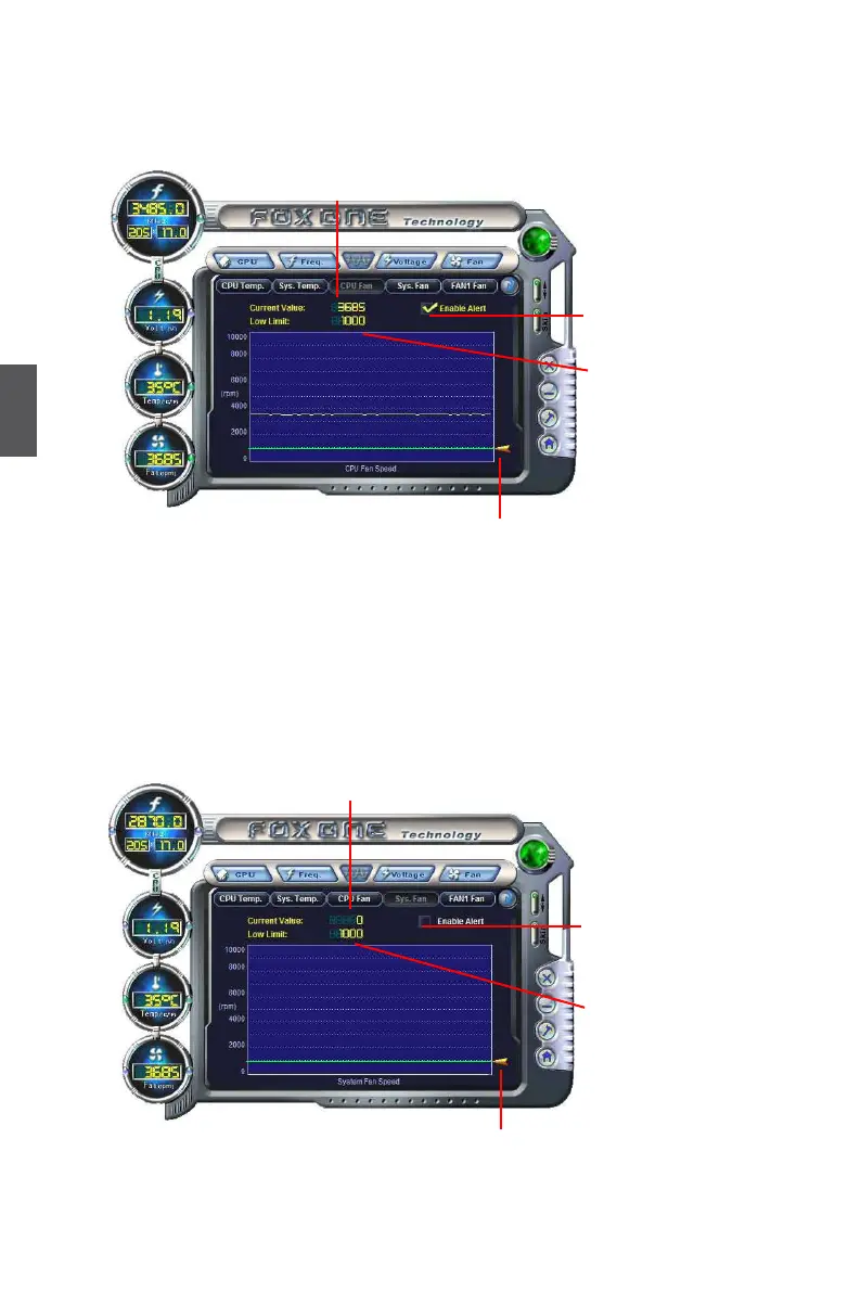 This page lets you to set system fan low limit rpm and enable the alert function.