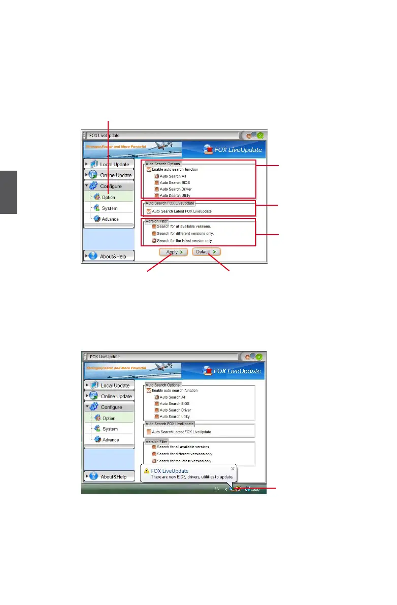 This page lets you set auto search options. After you enable the auto search function, FOX