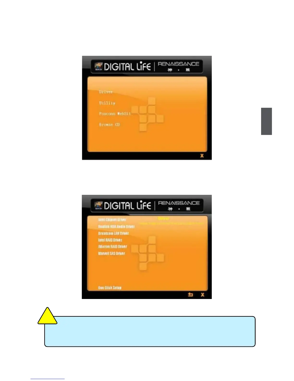 Select "Driver", then use these options to install all the necessary drivers for your motherboard.
