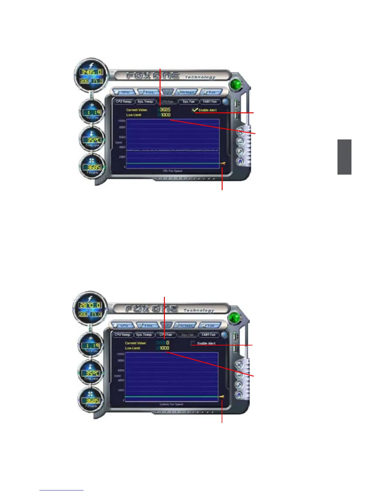 This page lets you to set system fan low limit rpm and enable the alert function.