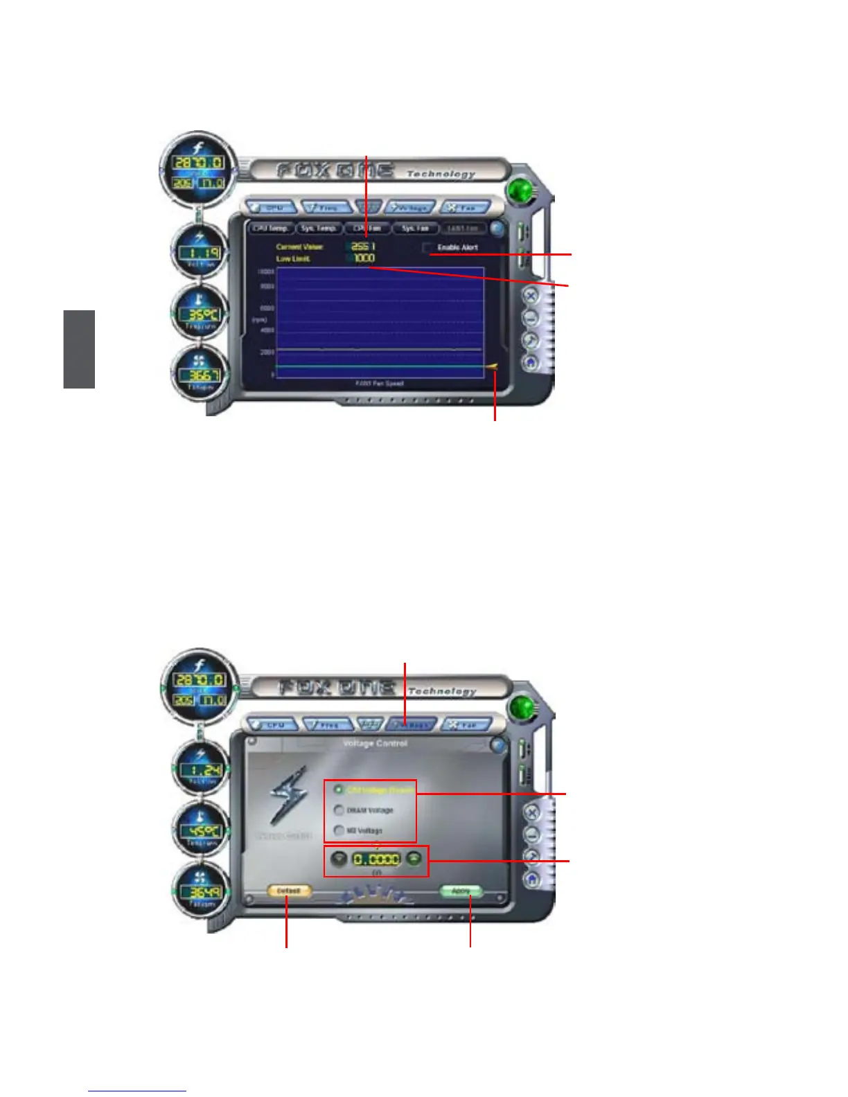 This page lets you set CPU voltage, memory voltage and North Bridge voltage manually. CPU