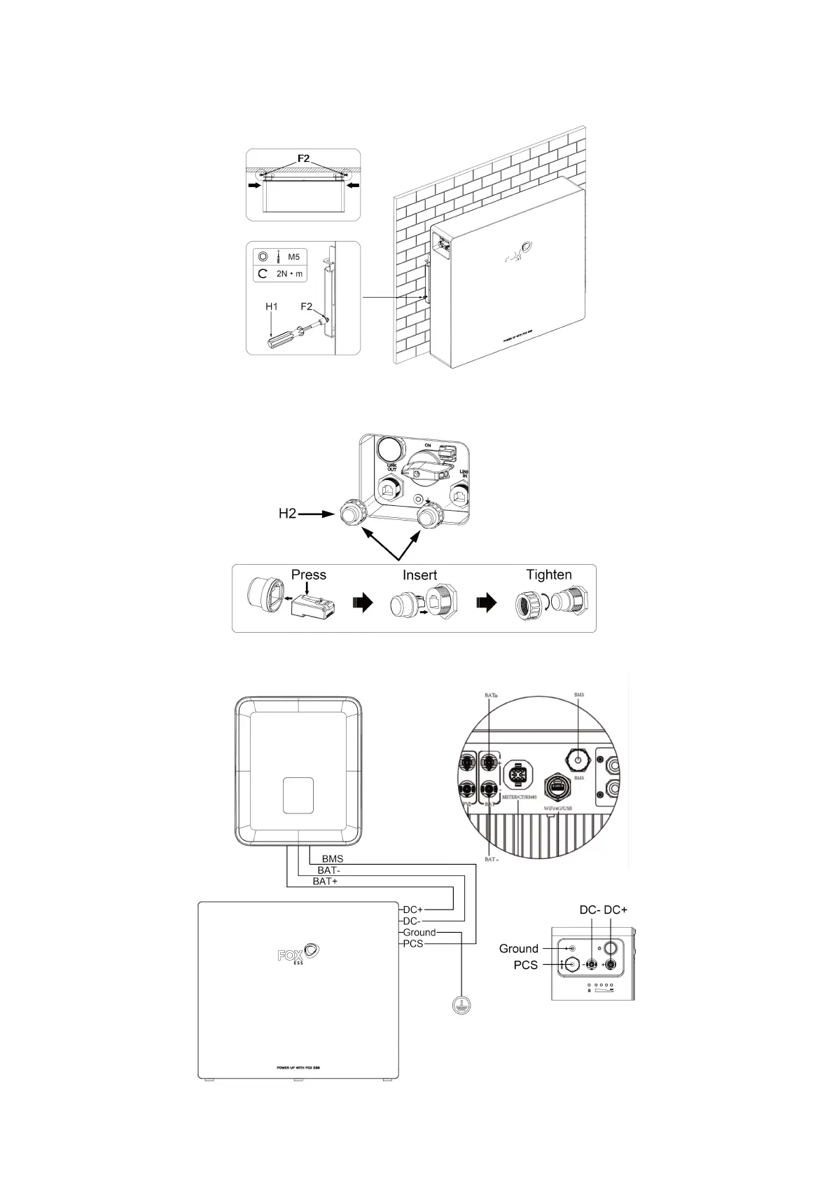 Step 3: Insert 2 pcs of M5*10 screws (F2) into the holes on the left and right sides of the mounting bracket then