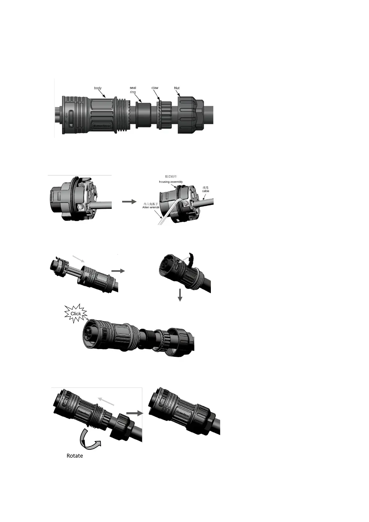 Step 3:The housing is inserted into socket, then the unlock key is inserted into socket.