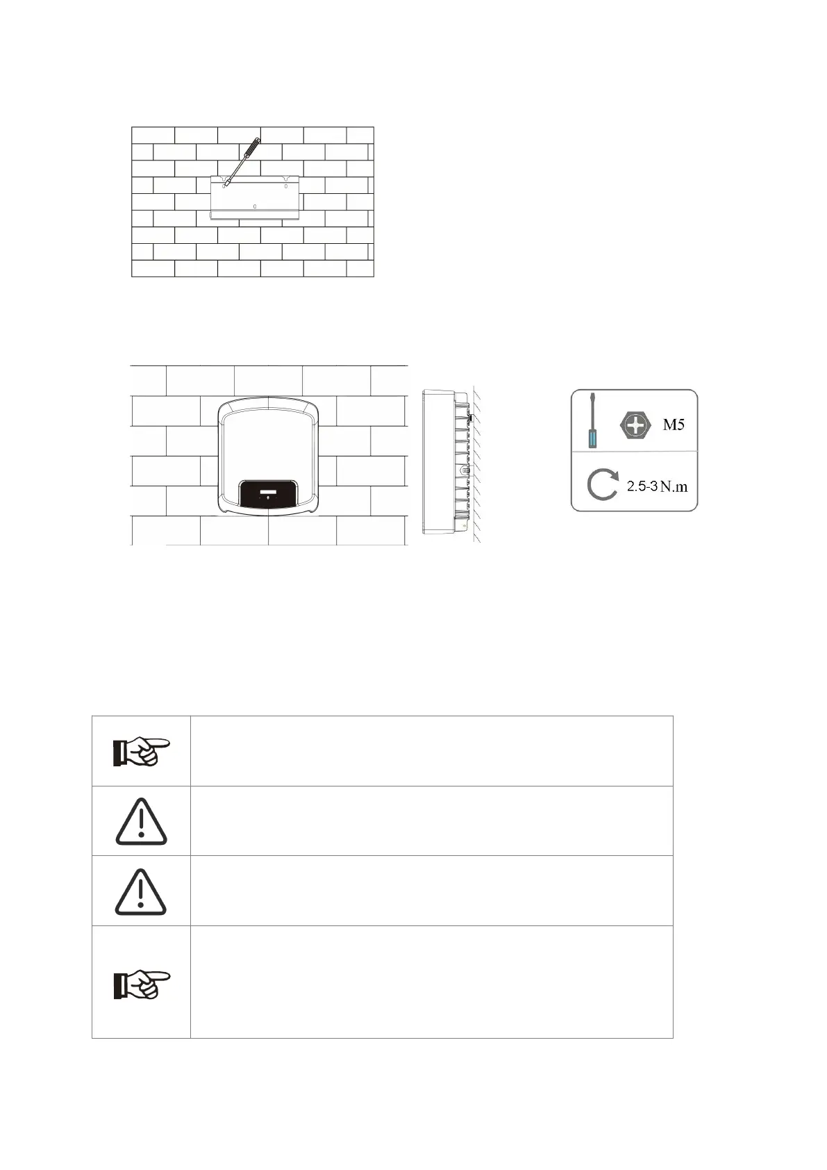 Hang the inverter over the bracket, slightly lower the inverter, and make sure the 2 mounting bars on the