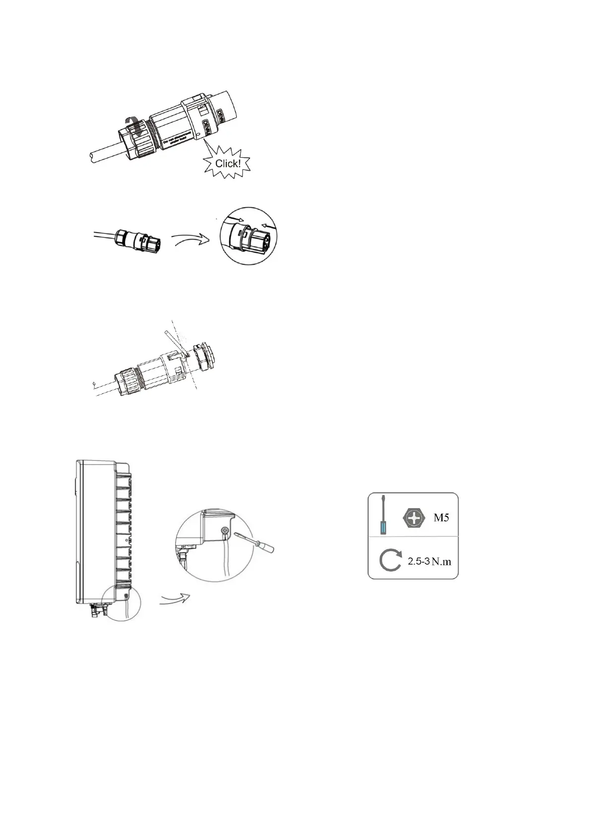 • Push the threaded sleeve to connection terminal until both are locked tightly on the inverter.