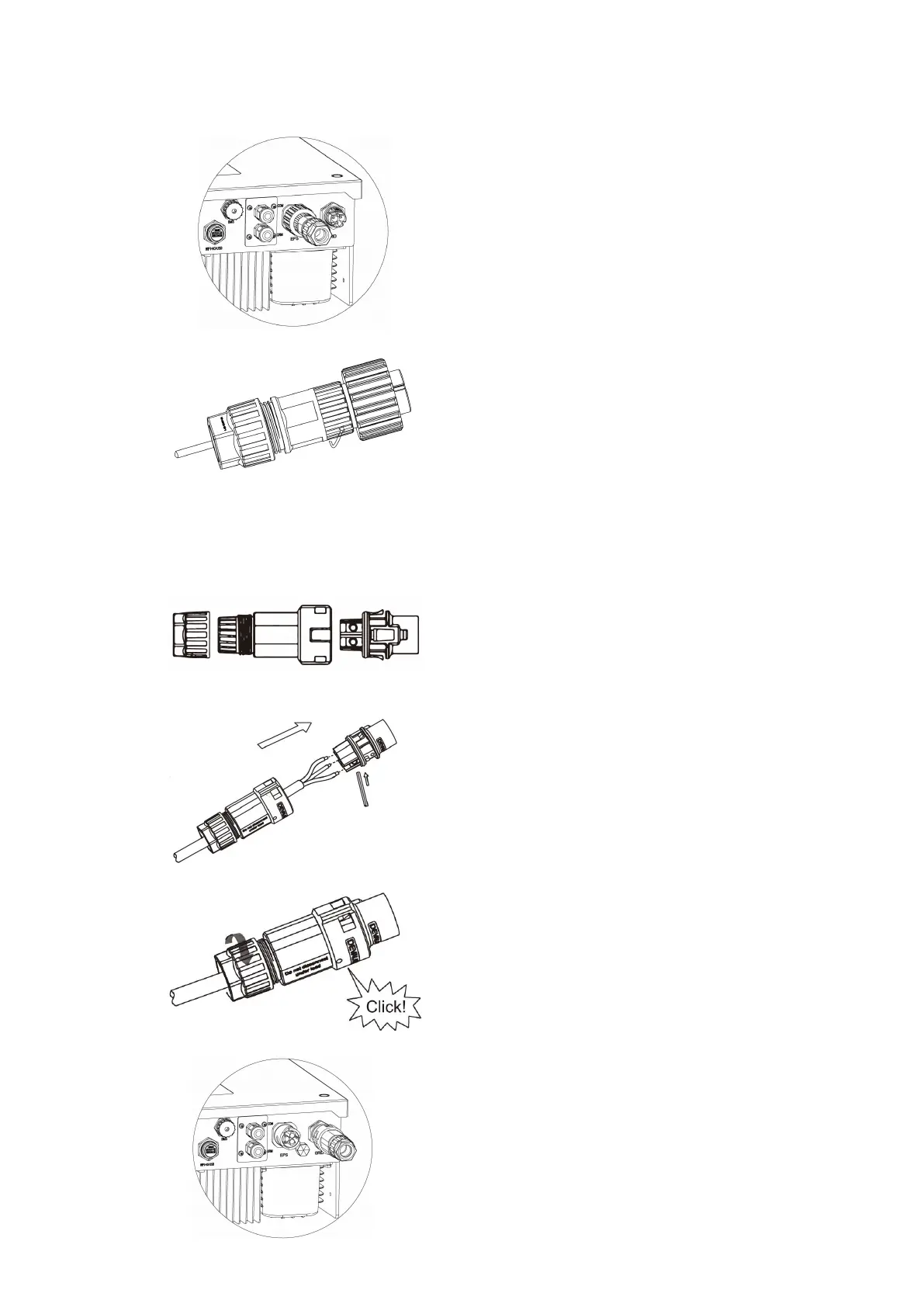 • Push the threaded sleeve to connection terminal until both are locked tightly on the inverter.