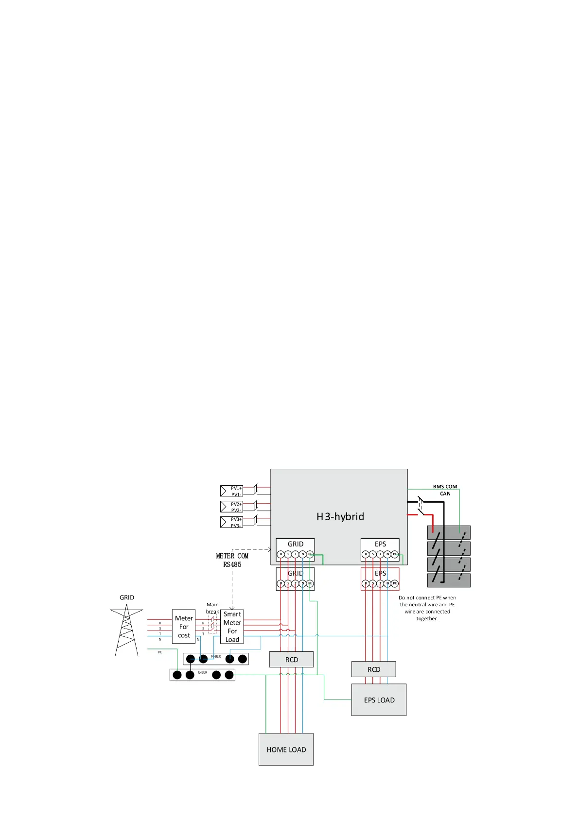 This diagram is an example for an application that neutral connects with the PE in a distribution box.