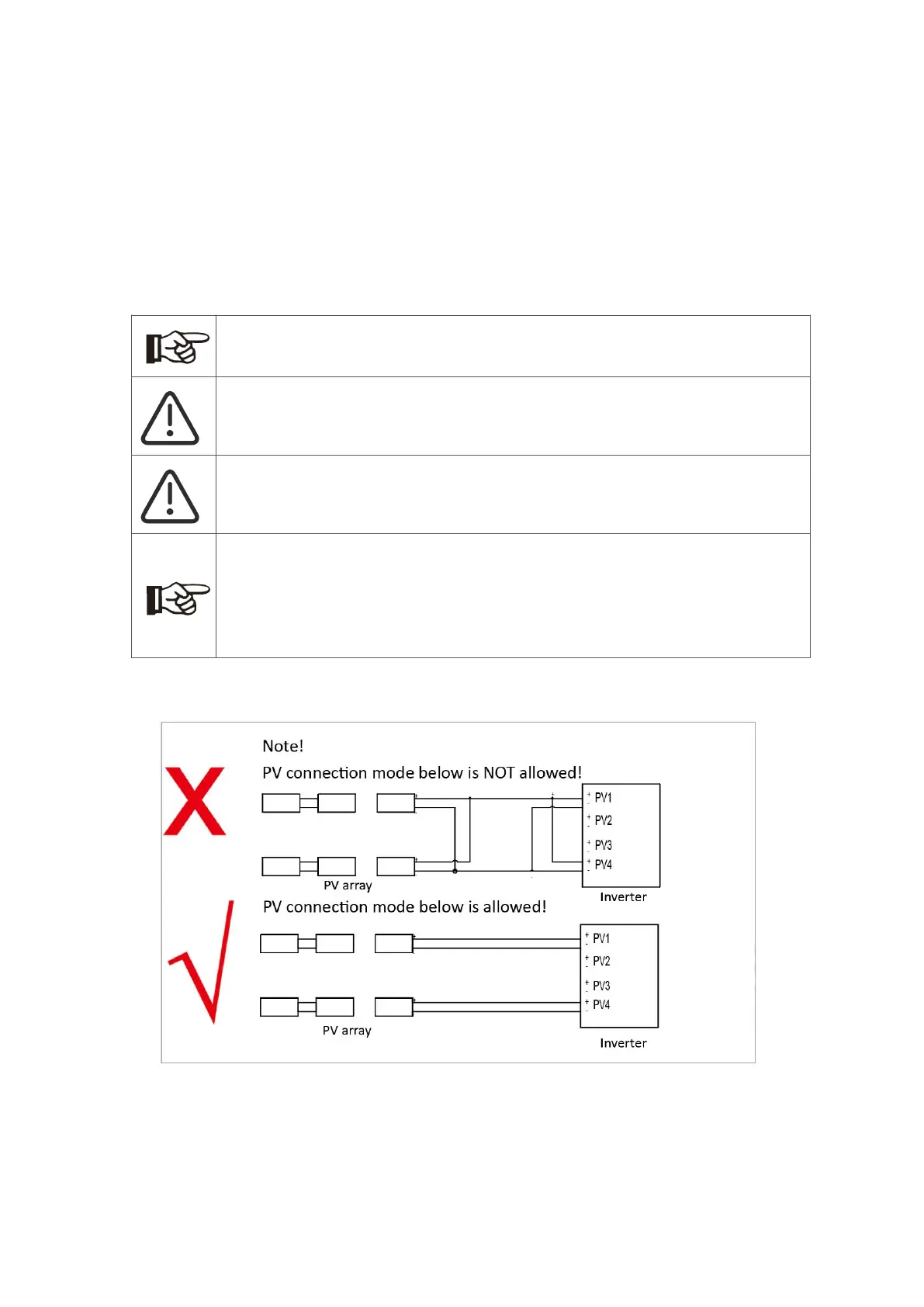 PV modules: Please ensure they are the same type, have the same output and specifications,