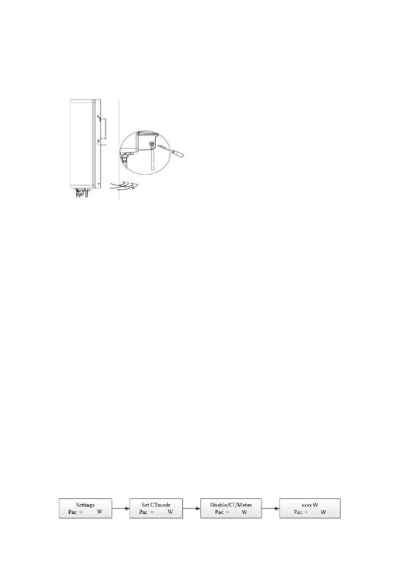 installed. The CT should be clamped on the main live line of the grid side. The arrow on the CT should be pointing