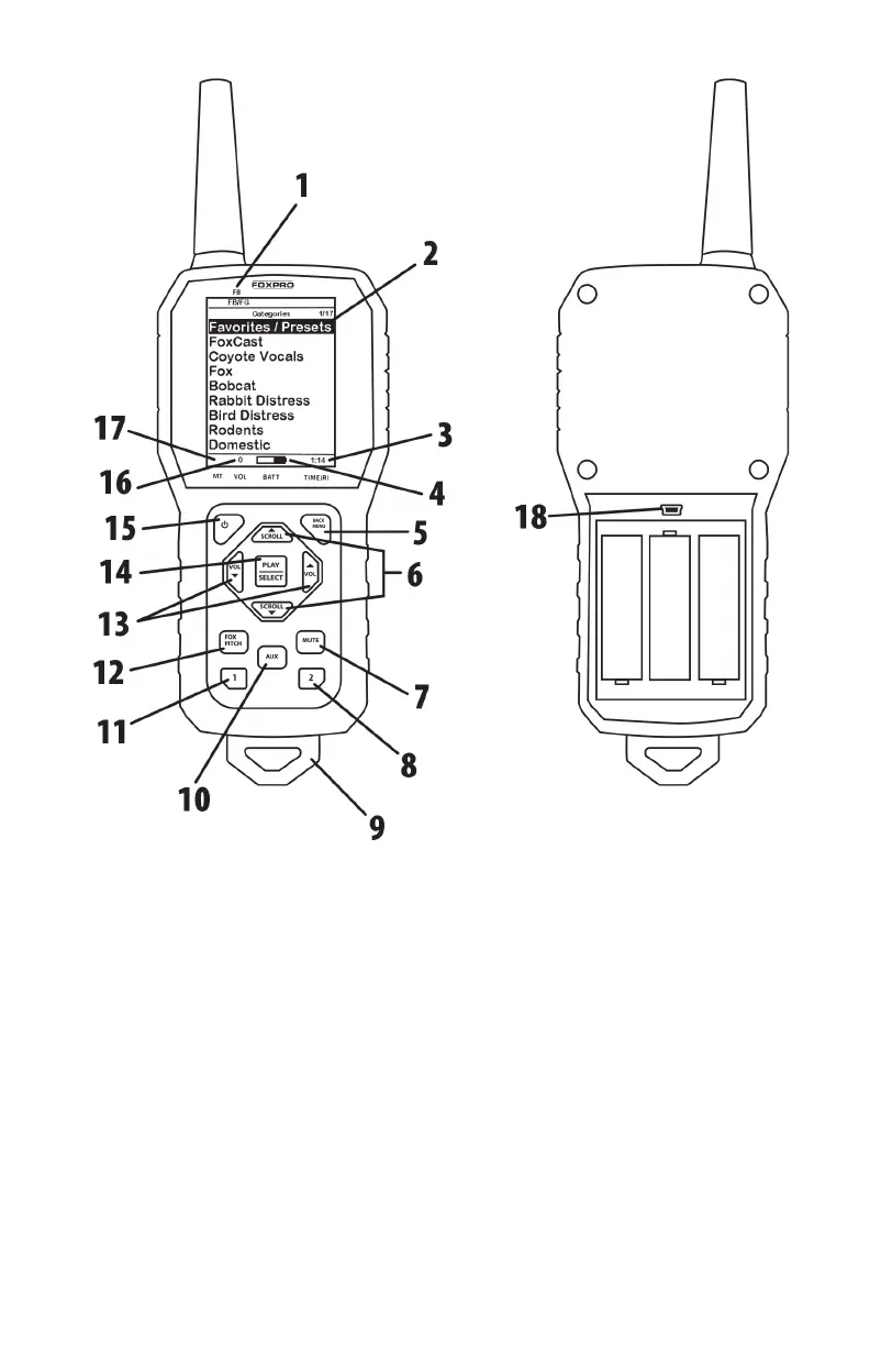 2. The upper portion of the remote features the screen. The screen