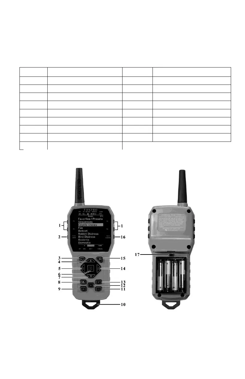 The following chart corresponds to a graphic on the next page that depicts the XWave remote.