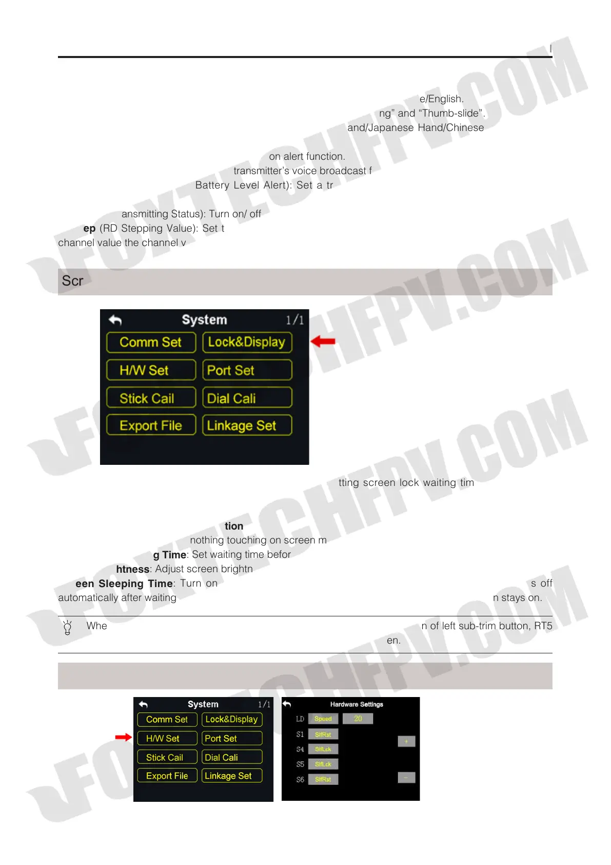 : Turn on / off transmitter screen’s sleeping function (screen display turns off