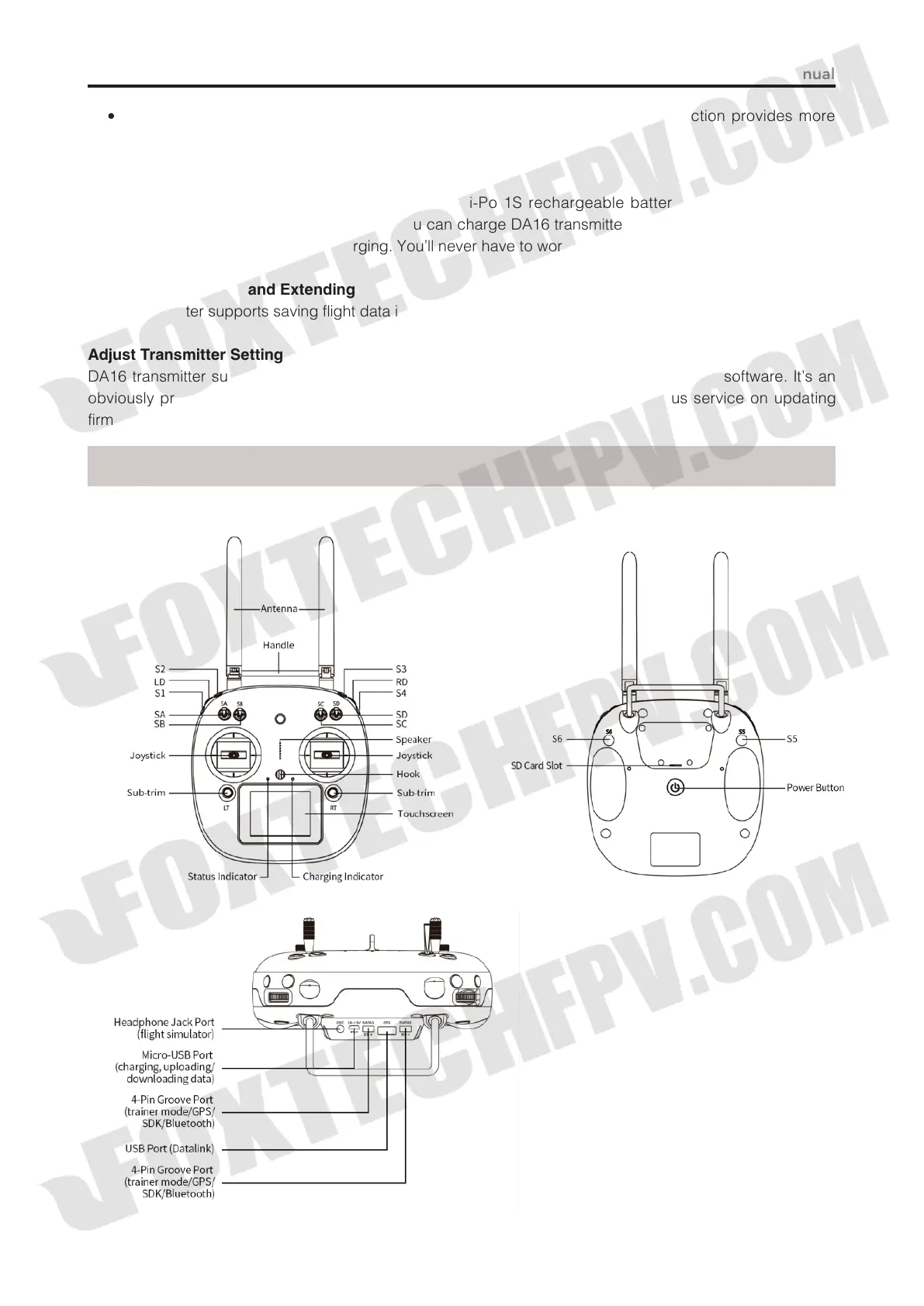 DA16 transmitter supports saving flight data in SD card and extending to new functions from SD card.