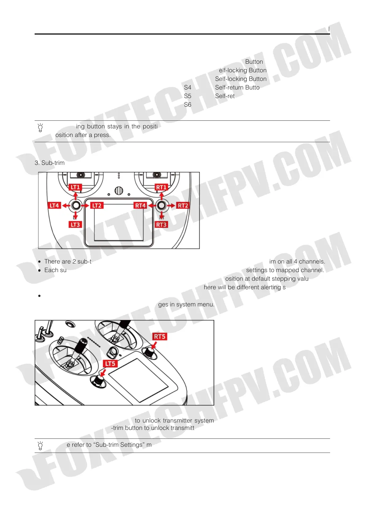 Sub-trim buttons can also be used to unlock transmitter system menu when transmitter lock is activated.