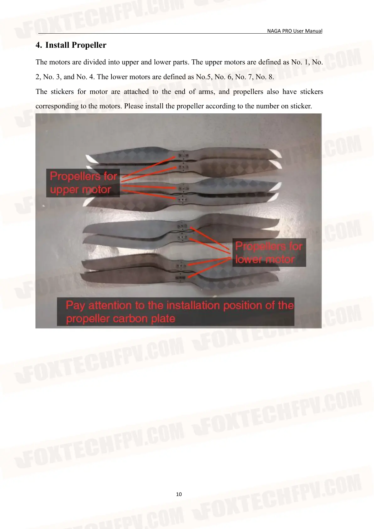 corresponding to the motors. Please install the propeller according to the number on sticker.