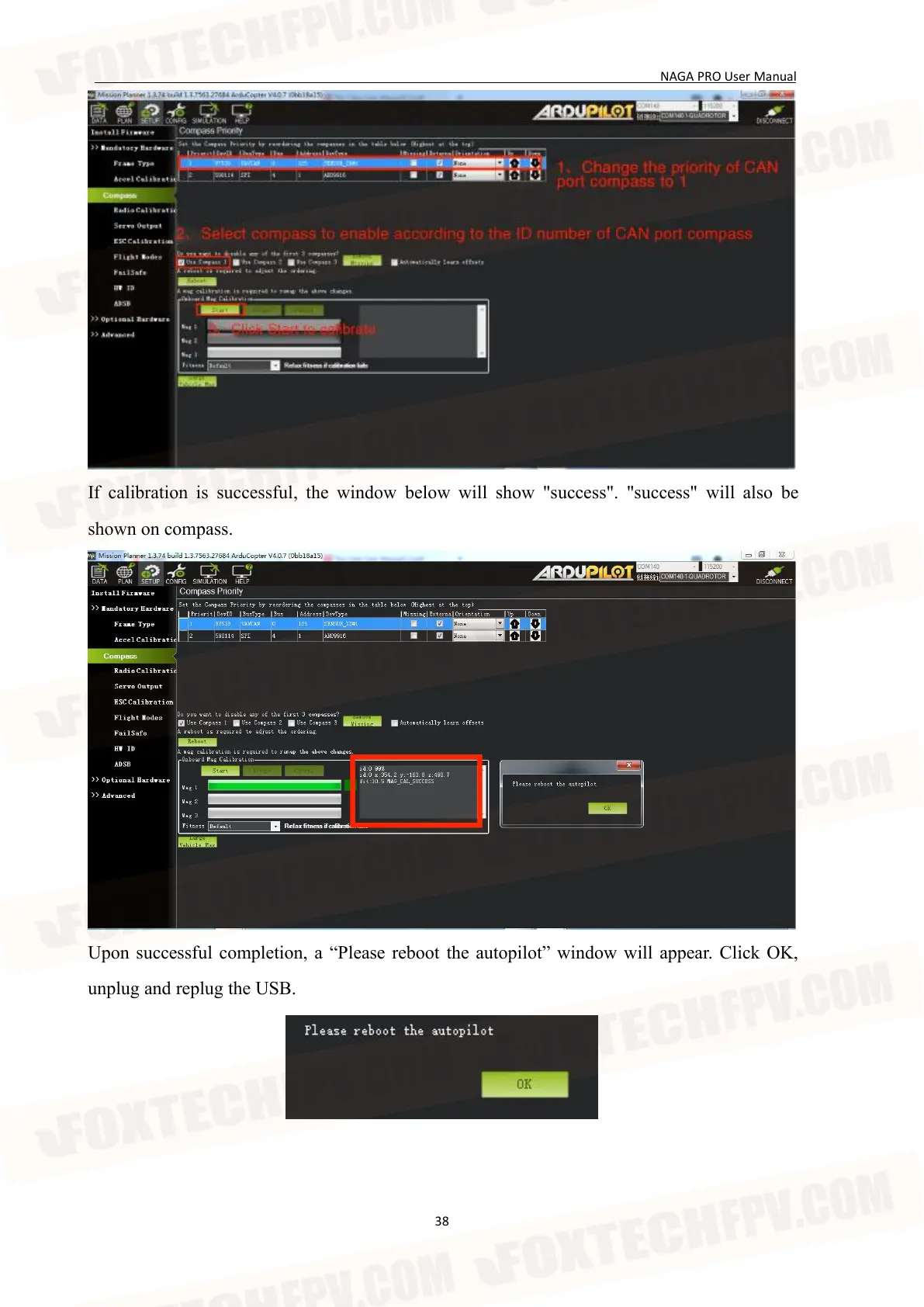 Upon successful completion, a Please reboot the autopilot window will appear. Click OK,