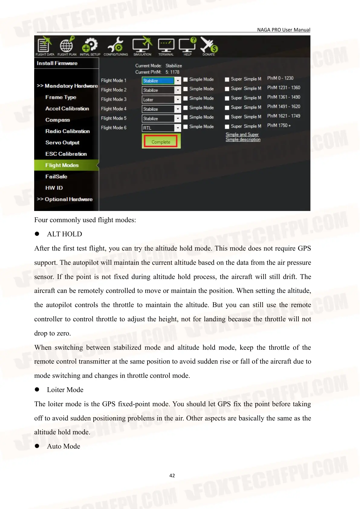 Four commonly used flight modes: