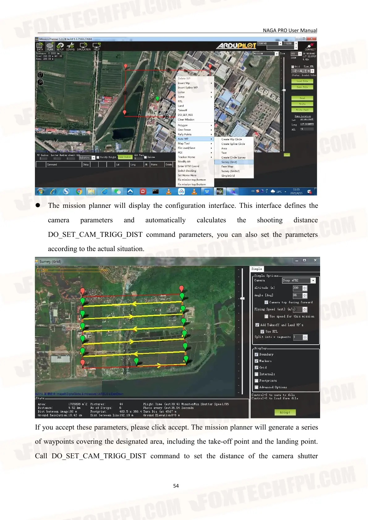 If you accept these parameters, please click accept. The mission planner will generate a series