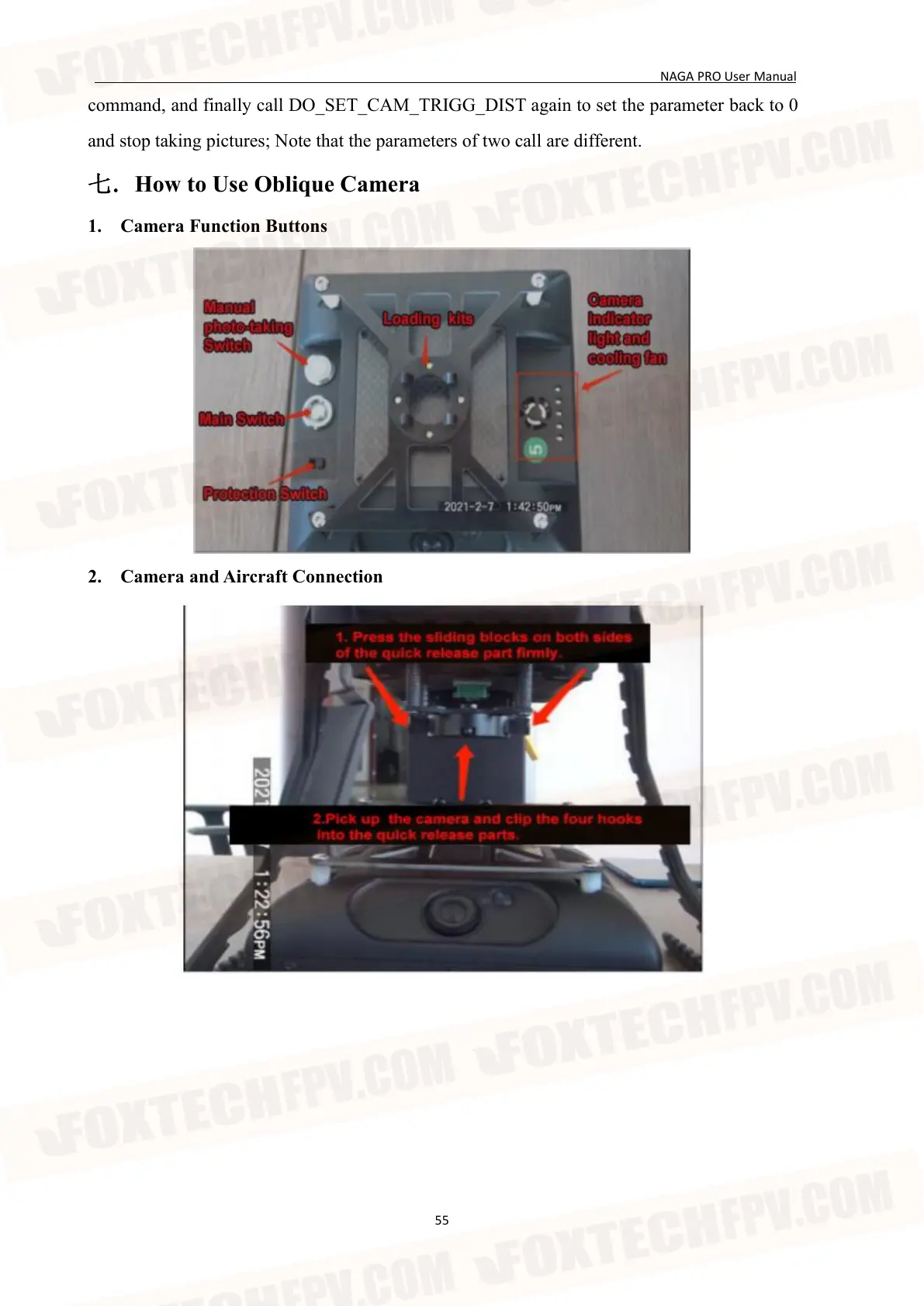 Foxtech Naga Pro MX16 - 七.How to Use Oblique Camera; Camera Function Buttons; Camera and Aircraft Connection