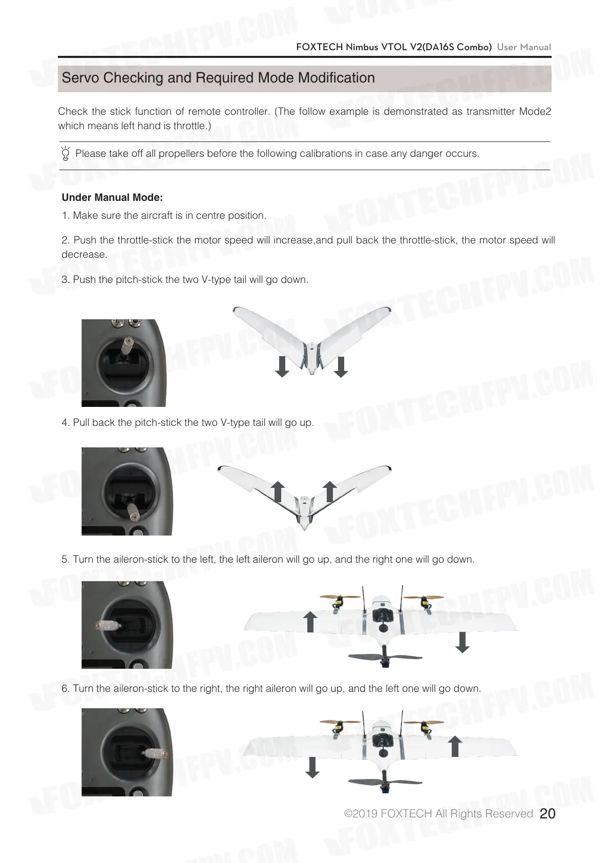4. Pull back the pitch-stick the two V-type tail will go up.