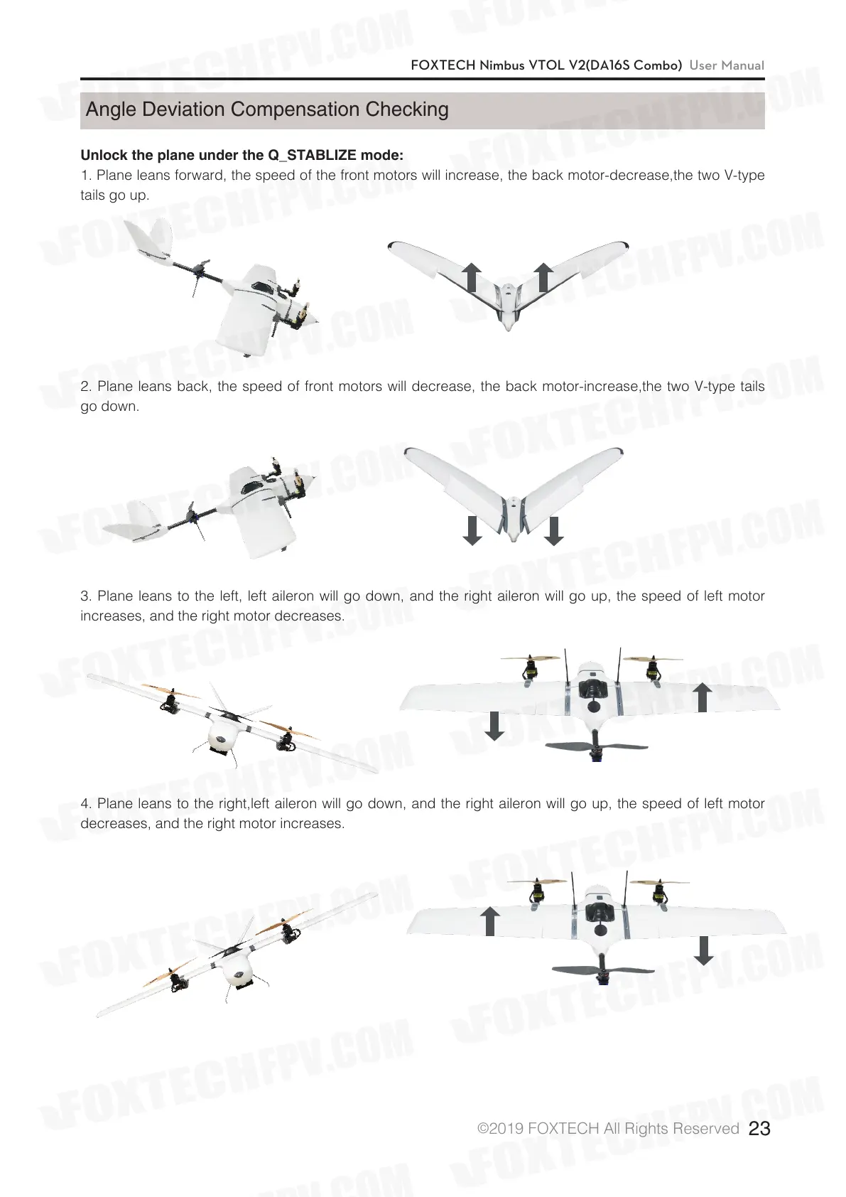 2. Plane leans back, the speed of front motors will decrease, the back motor-increase,the two V-type tails