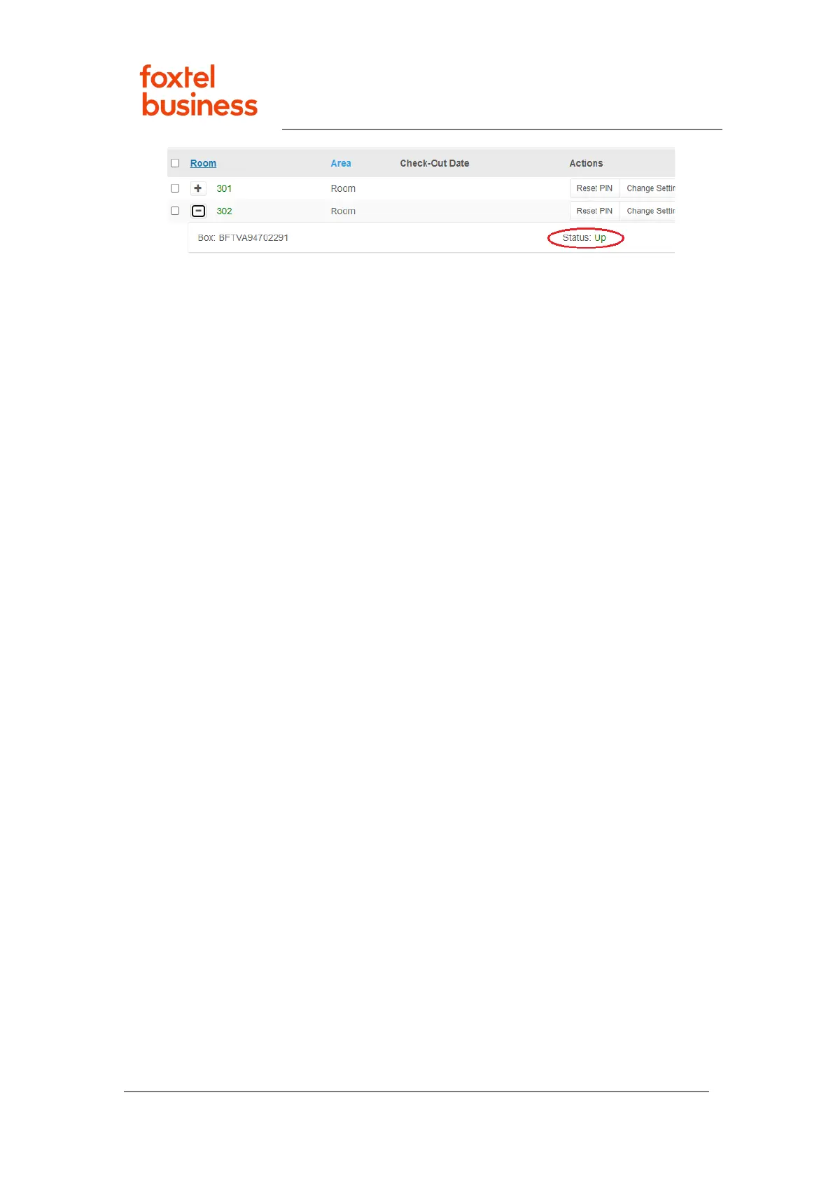 4. Click Reboot on the affected room and Yes when prompted to confirm.
