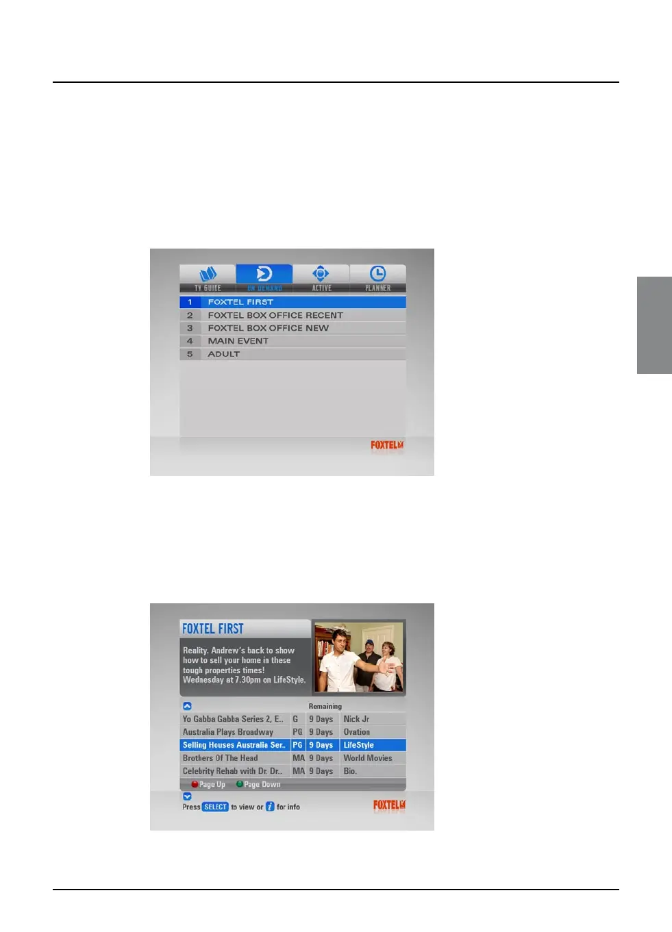 u To look at the FOXTEL First screen, highlight ‘FOXTEL First’ in
