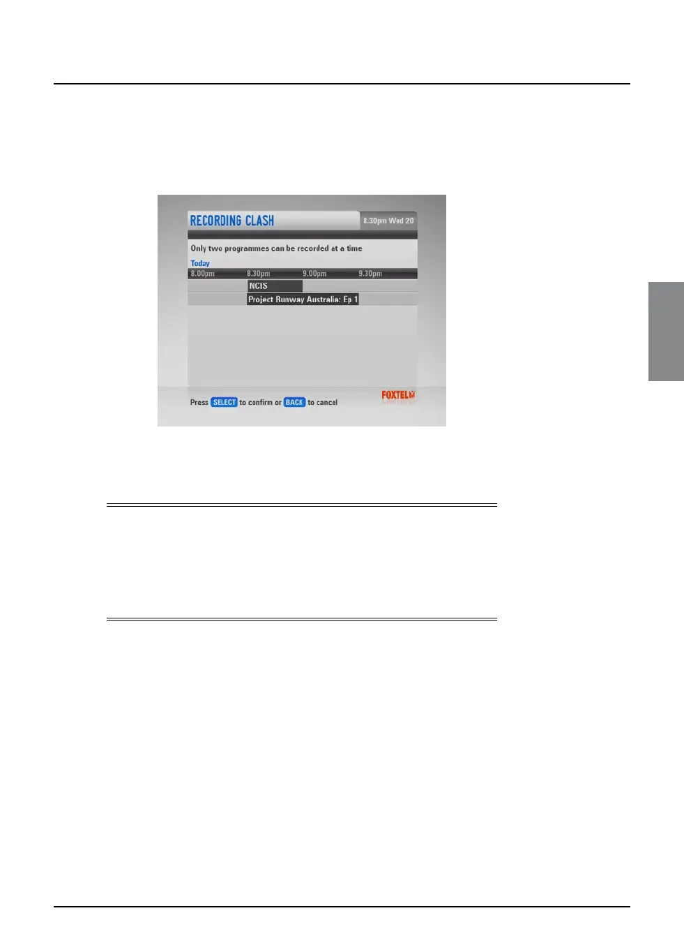 Sometimes a recording clash may occur when the programme is