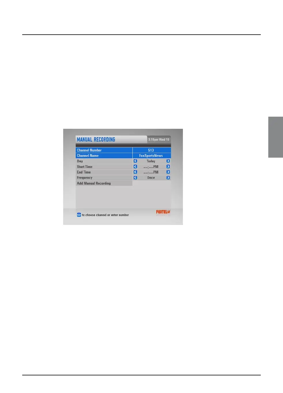 u Press D to highlight ‘Manual Recording’ then press select.