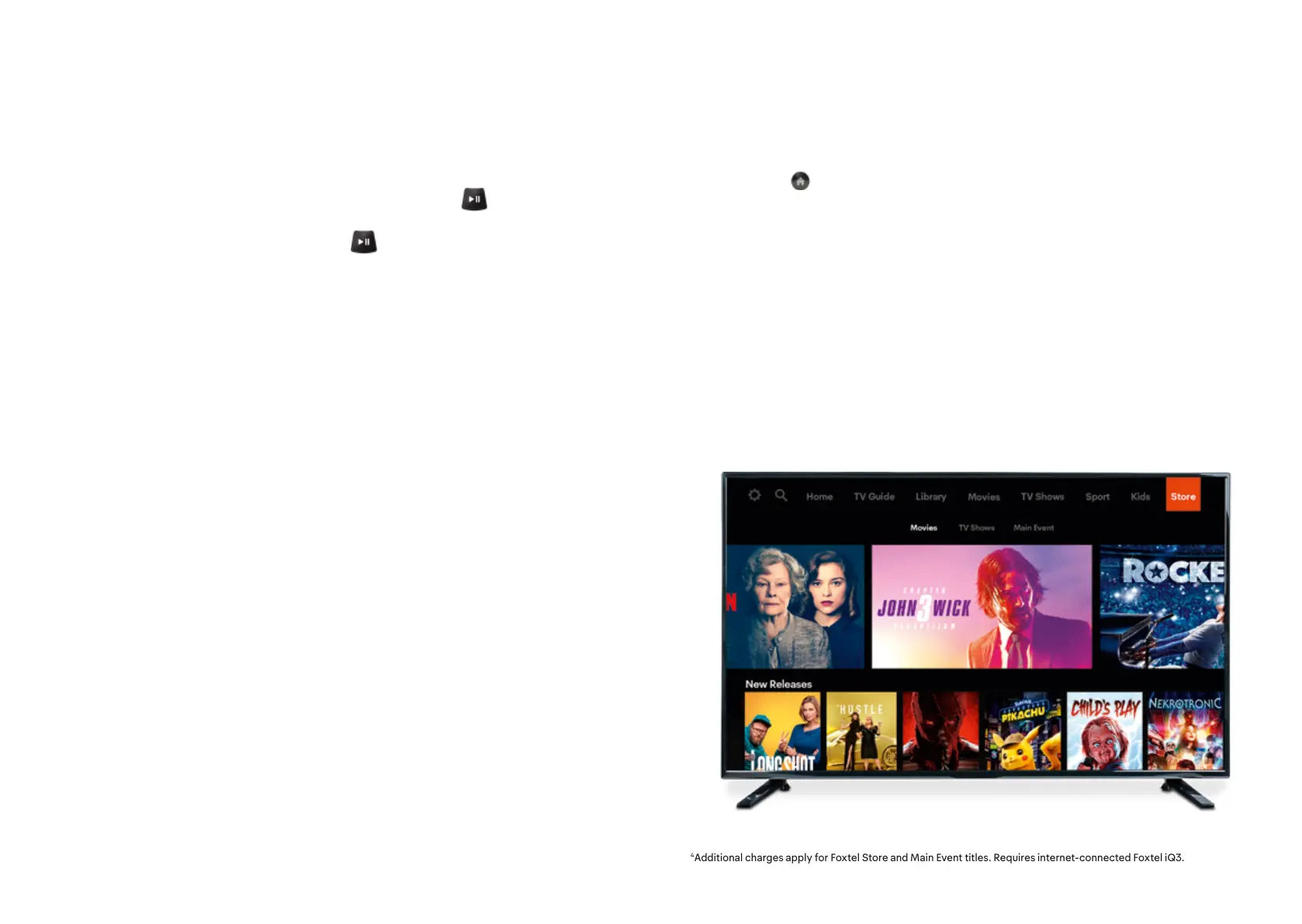 Additional charges apply for Foxtel Store and Main Event titles. Requires internet-connected Foxtel iQ3.