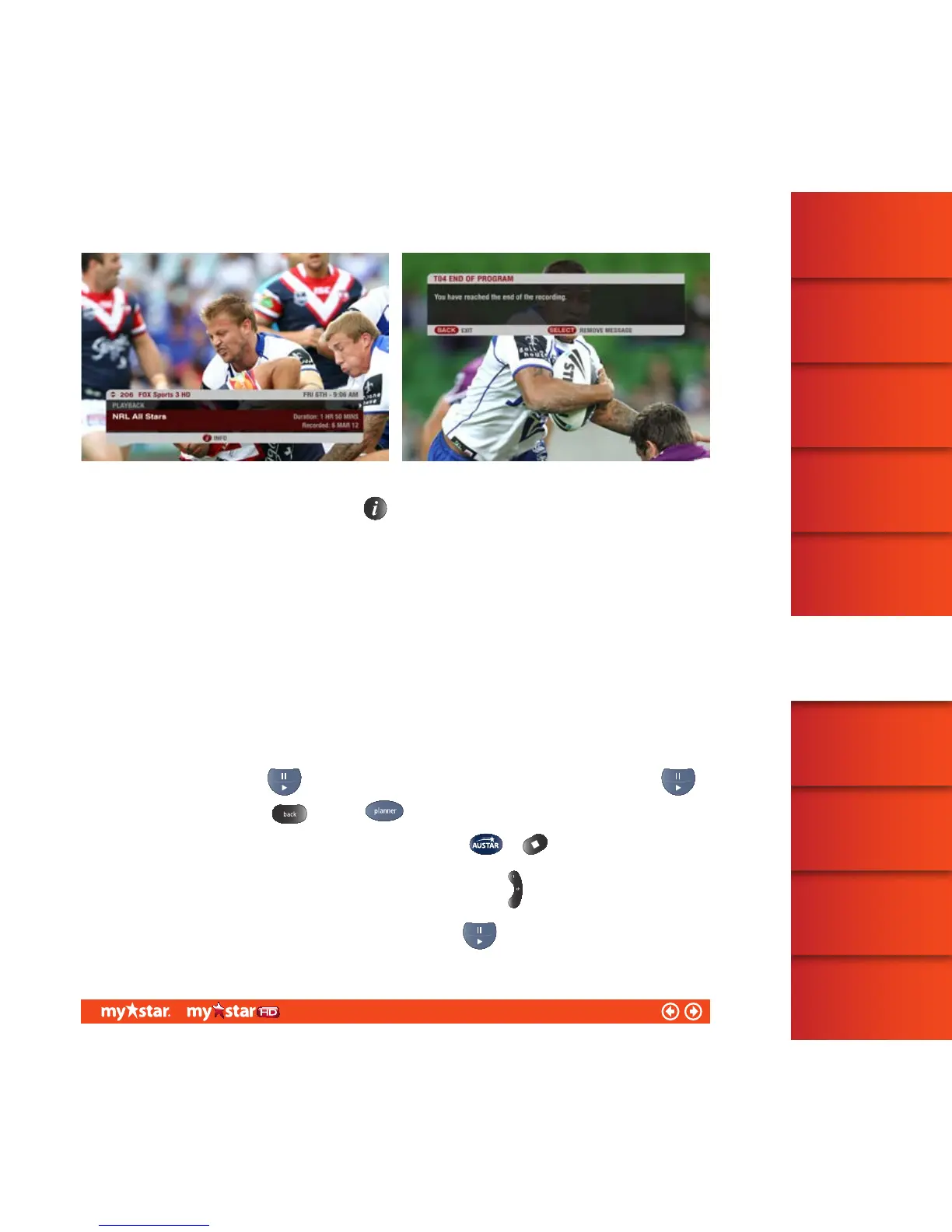 button on the MyStar remote control. To resume playback, press