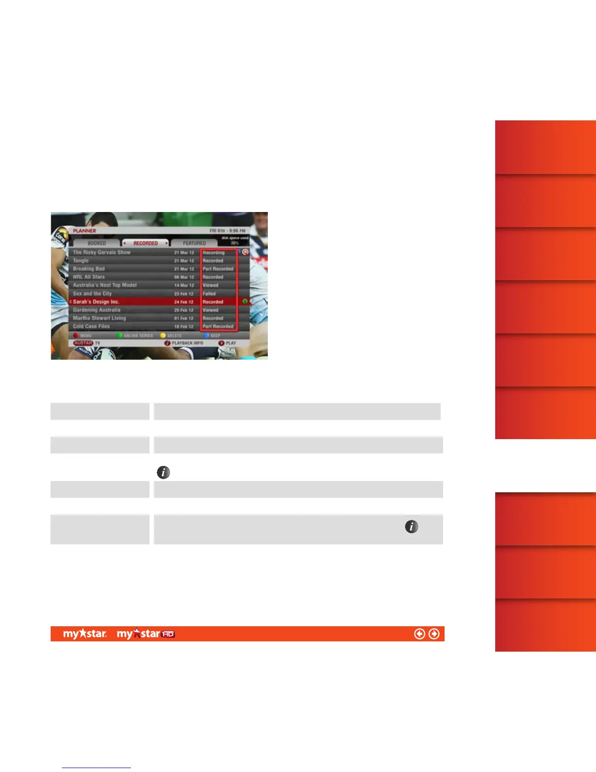 When a program is currently recording, or has been recorded, information about the status of the program will be